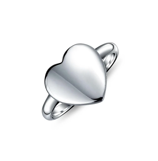 Bling Jewelry Simple Heart Shape Signet Large Ring Sterling Silver