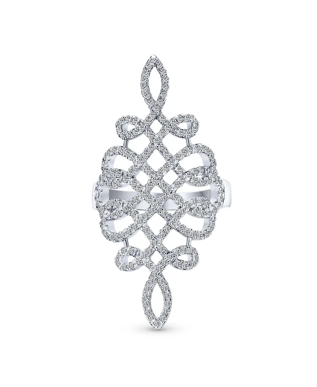 Bling Jewelry Large Pave Cubic Zirconia Art Deco Elegant Full Finger Armor Cz Statement Swirl Infinity Ring Sterling Silver