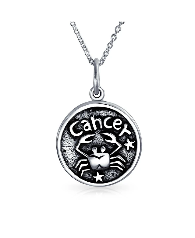 Bling Jewelry Cancer Zodiac Sign Astrology Horoscope Round Medallion Pendant Necklace Antiqued Sterling Silver