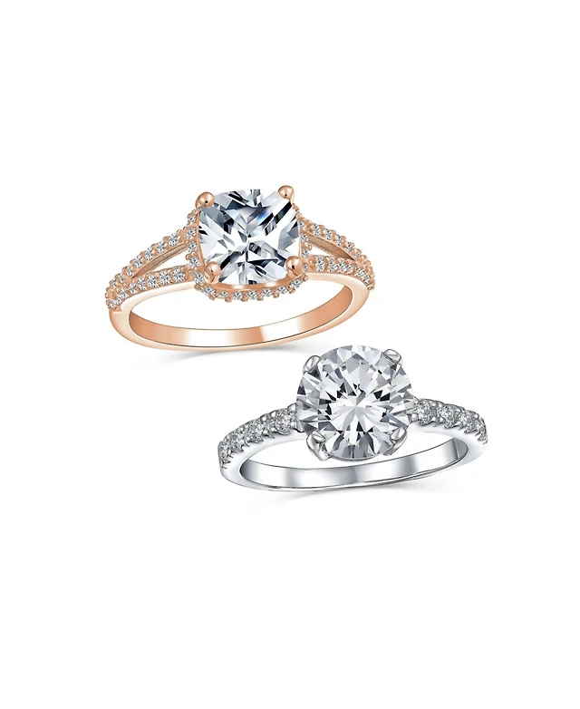 Bling Jewelry 2-Pc. Sterling Silver Cz Promise Rings in Silver or Rose Gold with Cushion-Cut Solitaire & Pave Band