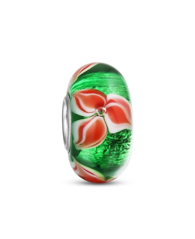 Bling Jewelry Christmas Holiday Red Candy Cane Peppermint Murano Glass Sterling Silver Spacer Bead Fits European Charm Bracelet