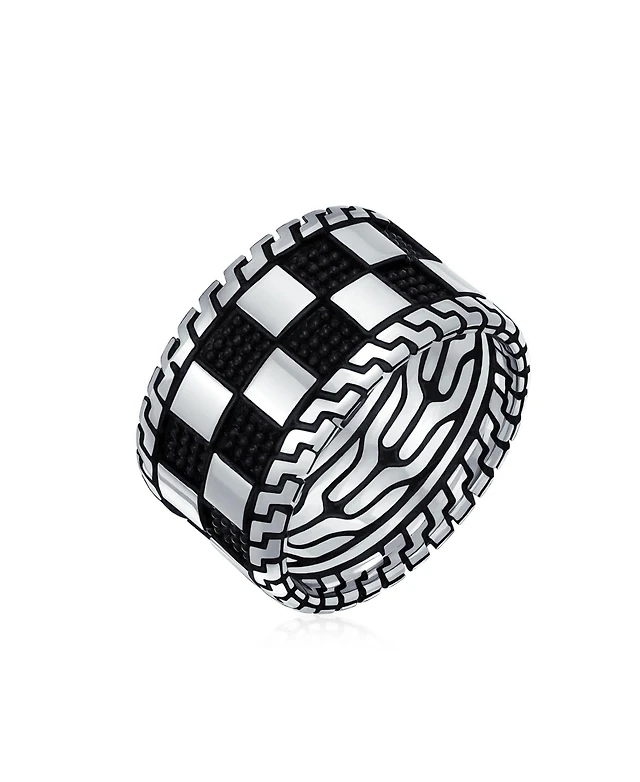 Bling Jewelry Inside Out Two Tone Black Silver Geometric Check Board Squares Chess Ring Band Heavy Solid Wide 12MM