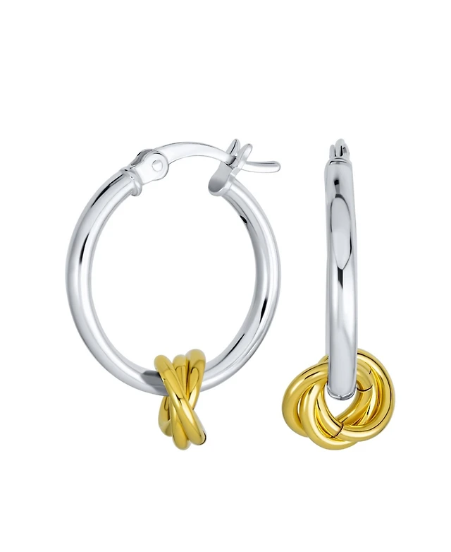 Bling Jewelry Twisted Side Charm Round Tube Thin Two Tone Love Knot Hoop Earrings Gold Plated Sterling Silver 1 Inch Diameter