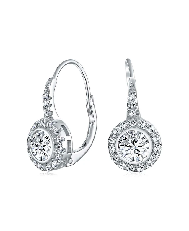 Bling Jewelry Classic Art Deco Style Cz Halo Circle Circlet Rosette Solitaire Drop Earrings Cubic Zirconia Sterling Silver
