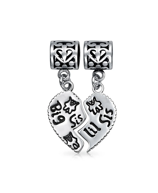 Bling Jewelry Bff Sis Little Sis Heart Charm Bead Sterling Silver for European Bracelet