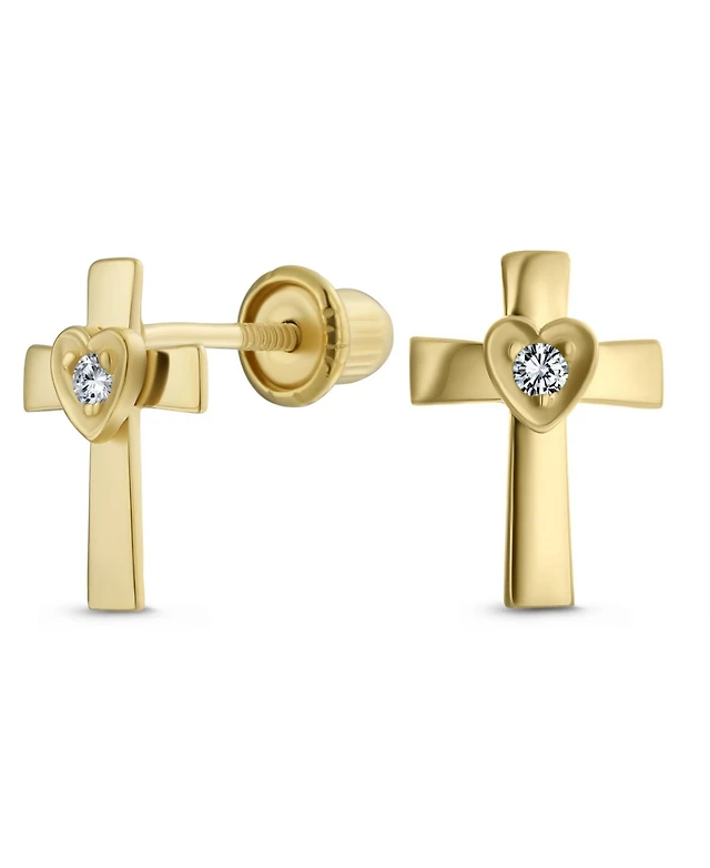 Bling Jewelry Tiny Minimalist Religious Christian Catholic CZ14K Gold Screw back Heart Cross Stud Earrings