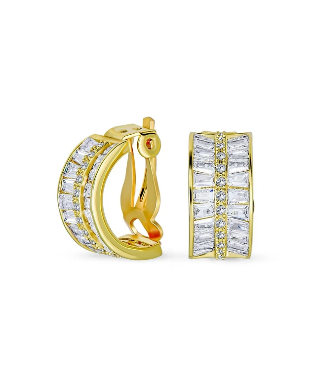 Bling Jewelry Art Deco Style Statement Cz Half Hoop Baguette Earrings Clip On Yellow Gold Plated