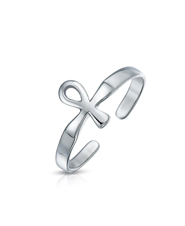 Bling Jewelry Religious Spiritual Midi Mid Finger Egyptian Ankh Cross Midi Toe Ring Silver Sterling Adjustable