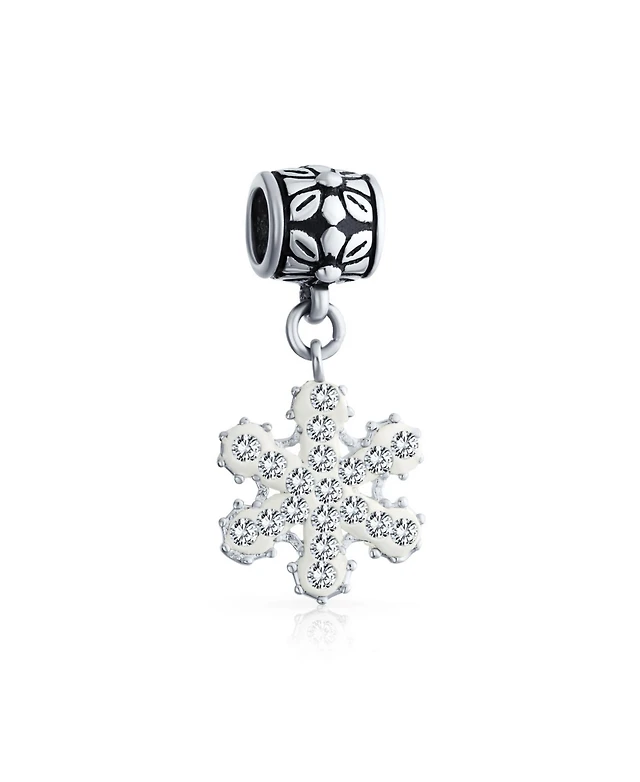 Bling Jewelry Frozen Winter Crystal Dangle Holiday Party Christmas Snowflake Bead Charm For Sterling Silver European Bracelet