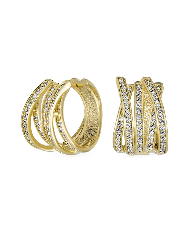Bling Jewelry Round Channel Set Cz Large Hoop Earrings Stardust Brush Matte Finish Gold Plated Stainless Steel 2 Diameter