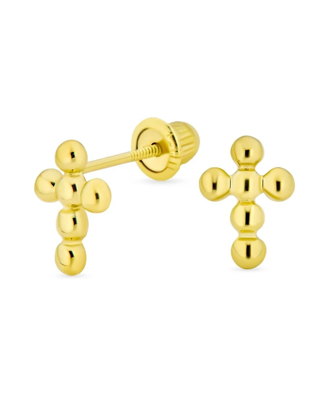 Bling Jewelry Tiny Minimalist Religious Christian Mini Ball Bubble Cross Stud Earrings 14K Yellow Gold Safety Screw back