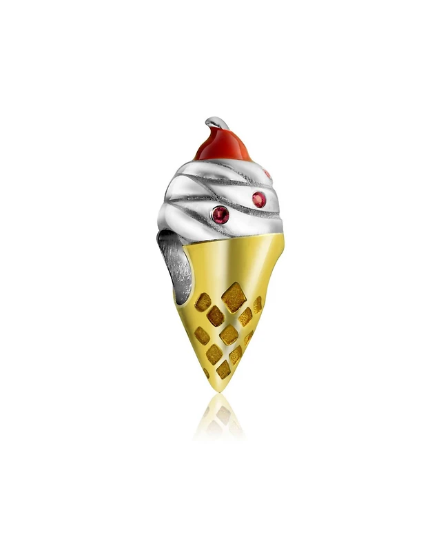 Bling Jewelry Multi Color Ice Cream Cone Charm Bead Two Tone 14K Gold Plated .925 Sterling Silver Fits European Bracelet