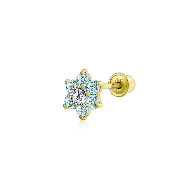 Bling Jewelry Tiny Aqua Blue Cubic Zirconia Flower Helix Cartilage Ear Lobe Piercing Daith Cz 1 Piece Stud Earring For Women 14K Gold Screw back