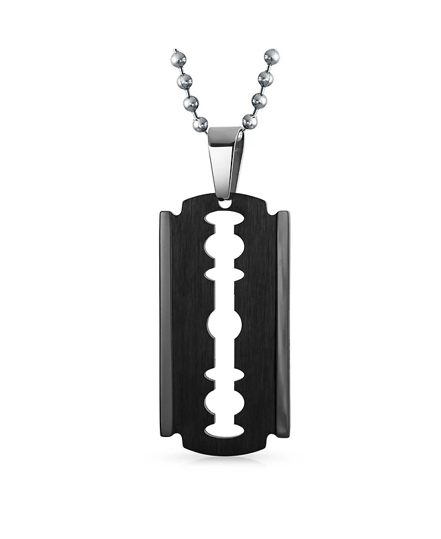 Bling Jewelry Hip Hop Biker Jewelry Large Razor Blade Dog Tag Pendant Necklace Black Silver Gold Tone Stainless Steel 20 Inch Ball Chain
