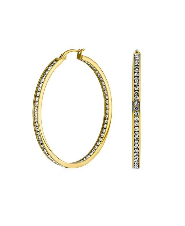 Bling Jewelry Round Channel Set Cz Hoop Earrings Silver Gold Tone Black Stainless Steel 2" Diameter
