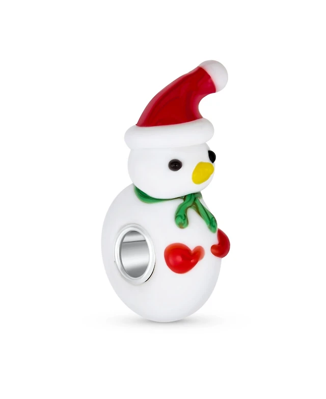 Bling Jewelry Christmas Holiday Snowman 3D Murano Glass Bead Charm Sterling Silver