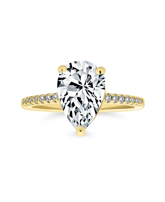 Bling Jewelry Pear Shape 2.5CT Teardrop Solitaire Cz Promise Ring 1MM Band Cubic Zirconia Sterling Silver
