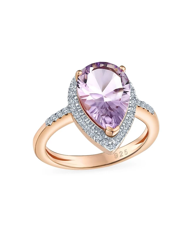 Bling Jewelry 3.75CTW Halo Teardrop Pink Amethyst Zircon Ring Rose Gold Plated Sterling Silver