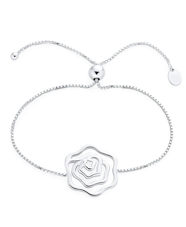 Bling Jewelry Delicate Garden Flower Open Rose Slide Bolo Style Bracelet Sterling Silver Adjustable