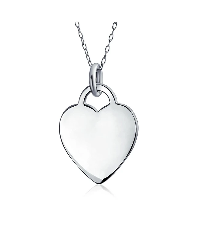 Bling Jewelry Tiny Minimalist Flat Medium Size Heart Shape Blank Plain Pendant Necklace Sterling Silver