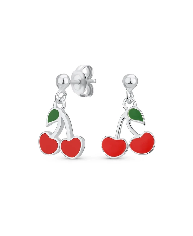 Bling Jewelry Small Summer Food Fruit Red Enamel Cherry Drop Earrings Sterling Silver