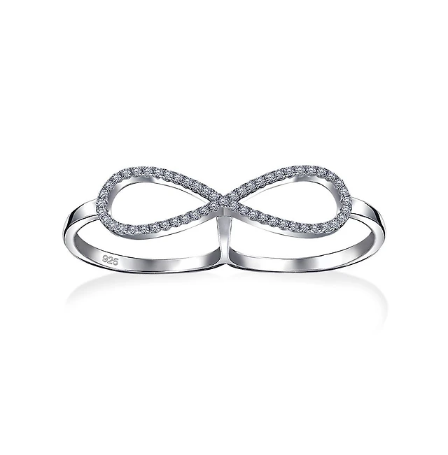 Bling Jewelry Boho Simple Large Pave Cubic Zirconia Fashion Statement Cz Infinity Two Finger Ring Sterling Silver