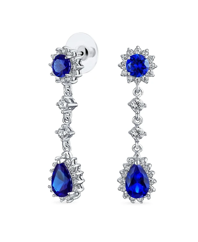 Bling Jewelry Statement Pave Crown Halo Cubic Zirconia Cz Long Dangling Oval Teardrop Chandelier Earrings