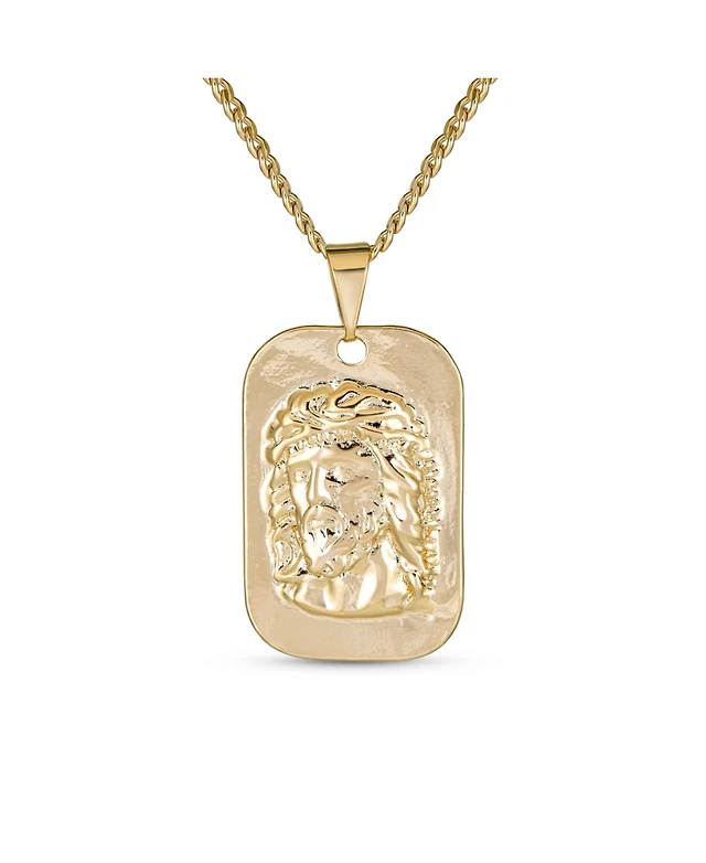 Bling Jewelry Religious Metal Dog tog Style Medallion Face of Jesus Christ Head Necklace Pendant Yellow Gold Plated