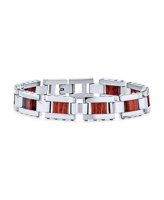 Bling Jewelry Brown Wood and Stainless Steel Bracelet with Strong Rectangle Link 8 Inch Length