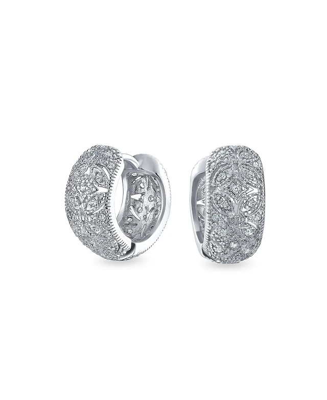 Bling Jewelry Victorian Style Filigree Flower Cz Accent Wide Huggie Hoop Earrings Cubic Zirconia Silver Rose Gold Plated