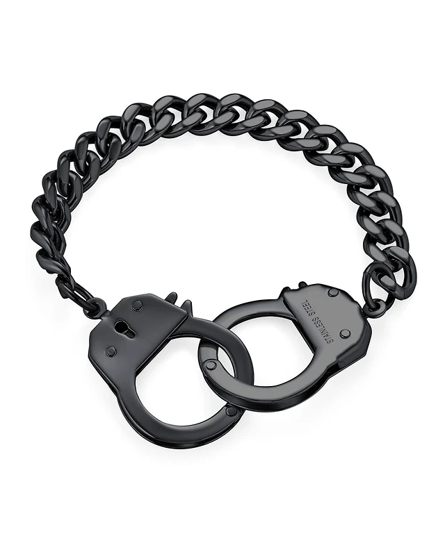 Bling Jewelry Biker Couples Handcuff Statement Bracelet Cuban Curb Chain Black Ip Stainless Steel