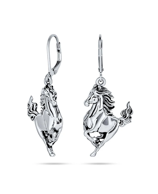 Bling Jewelry Equestrian Equine Gift Cowgirl Dangle Galloping Horse Earrings For Women Sterling Silver Lever back