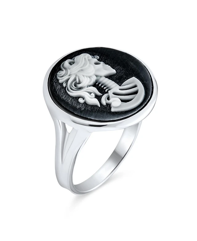 Bling Jewelry Classic Antique Victorian Style Framed Portrait Black White Oval Carved Cameo Ring Sterling Silver