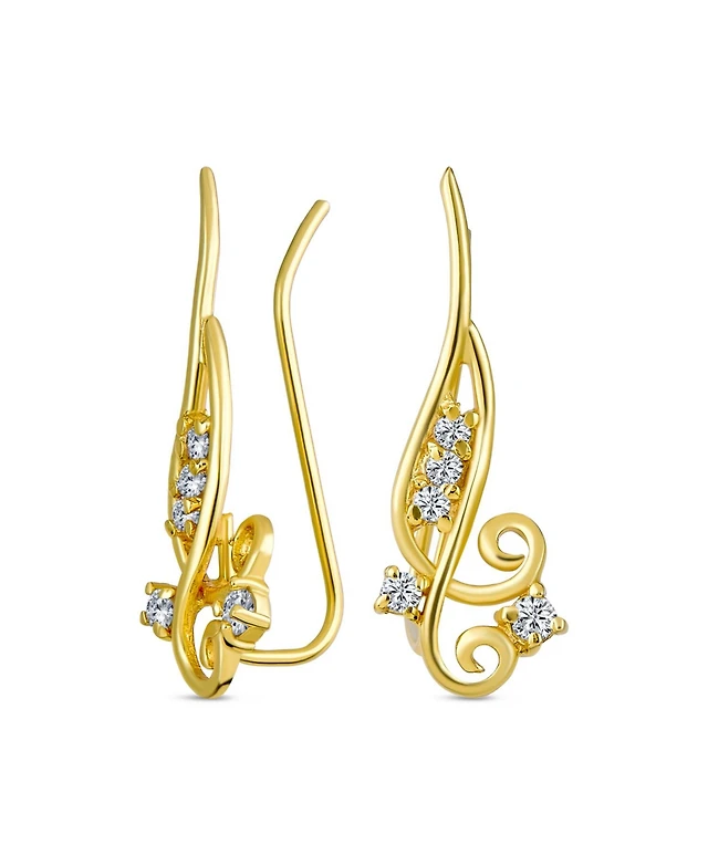 Bling Jewelry Trendy Scroll Swirl Ear Cuff Cartilage Earrings 14K Gold Plated Sterling Silver