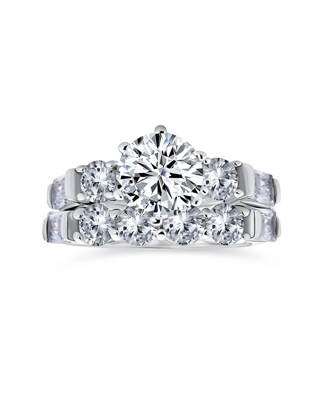 Bling Jewelry Classic Cathedral 6 Prong Baguette Side Stones Cubic Zirconia Aaa Cz Round 2 Ct Solitaire Anniversary Engagement Wedding Band Ring Set f