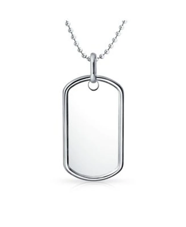 Bling Jewelry Large Army Military Dog Tag Long Bead Ball Chain Pendant Necklace Sterling Silver