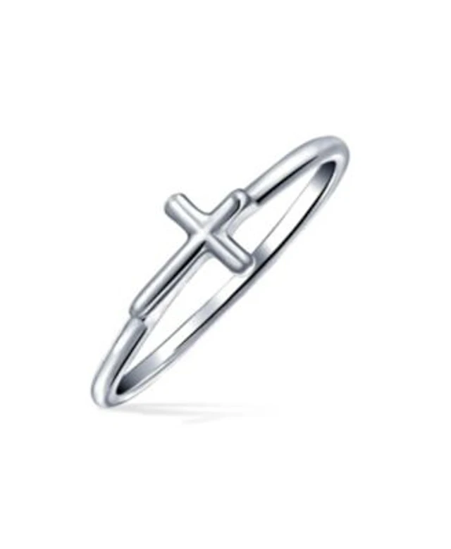 Bling Jewelry Minimalist Simple Midi Knuckle Thin 1MM Band Stackable Religious Sideways Cross Ring Gold Plated .925 Sterling Silver