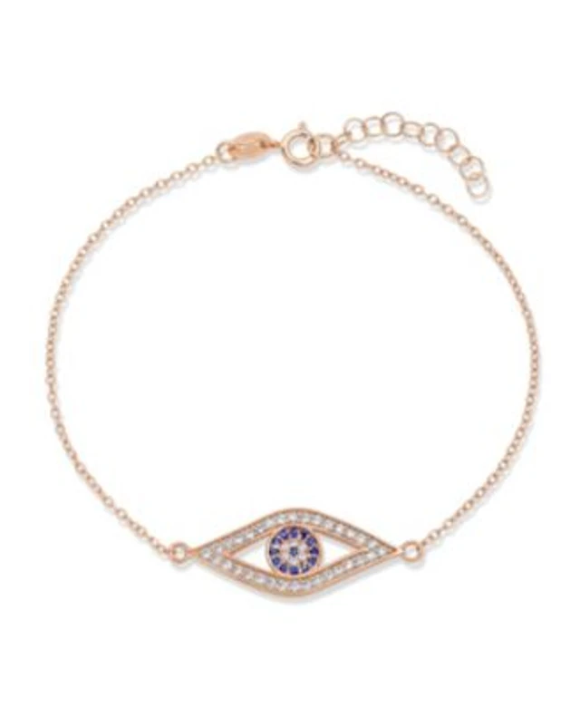 Bling Jewelry Delicate Minimalist Protection Amulet Cubic Zirconia Pave Cz Navy Blue Evil Eye Charm Bracelet Rose Gold Plated .925 Sterling Silver