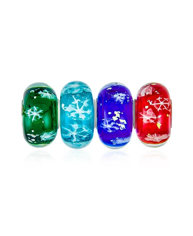 Bling Jewelry Set of 4 Christmas Charm Bead Snowflake Murano Glass Spacer for Bracelets