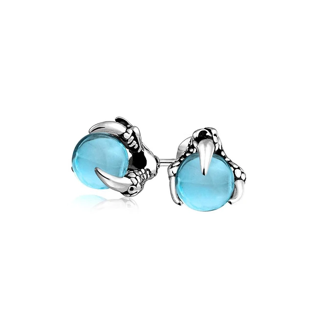 Bling Jewelry Gothic Punk Rocker Dragon Claw Stud Earrings Aqua Blue Ball Silver Tone