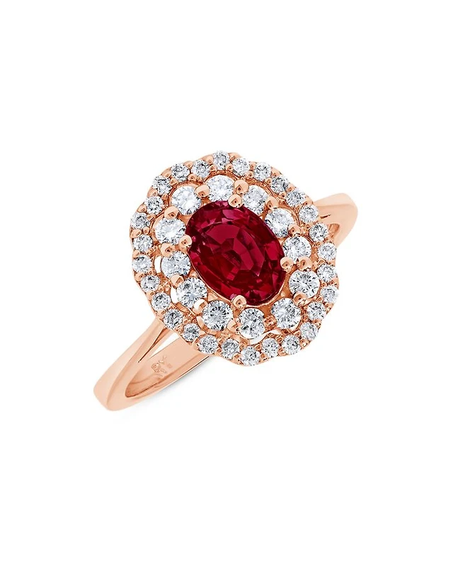 Ruby & Diamond Multi Halo Ring in 14K White Gold