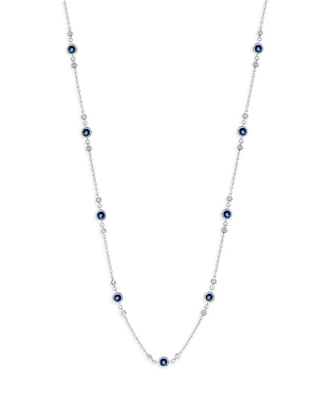Precious Gemstone & Diamond Bezel Station Collar Necklace Collection 14K Yellow Gold, 16-18"