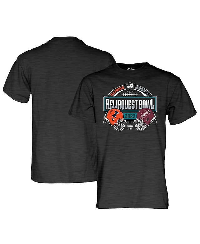 Men's Blue 84 Heather Charcoal Illinois Fighting Illini vs. Mississippi State Bulldogs 2023 ReliaQuest Bowl Matchup T-shirt