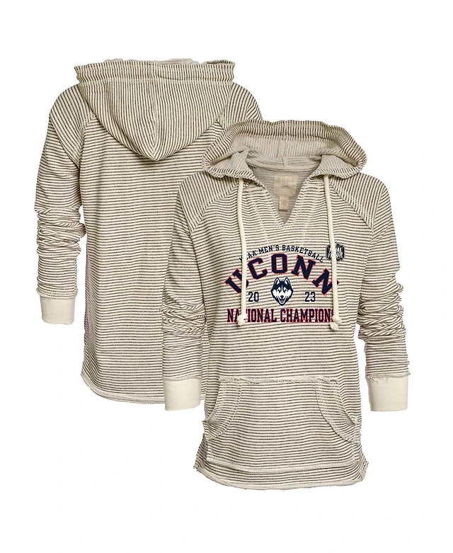 Women's Blue 84 Tan UConn Huskies 2023 Ncaa Men's Basketball National Champions Huntington French Terry V-Neck Pullover Hoodie