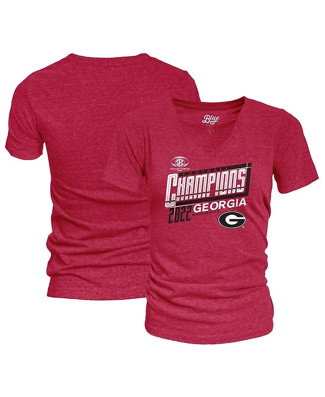Women's Blue 84 Red Georgia Bulldogs 2022 Sec Football Conference Champions Locker Room V-Neck T-shirt