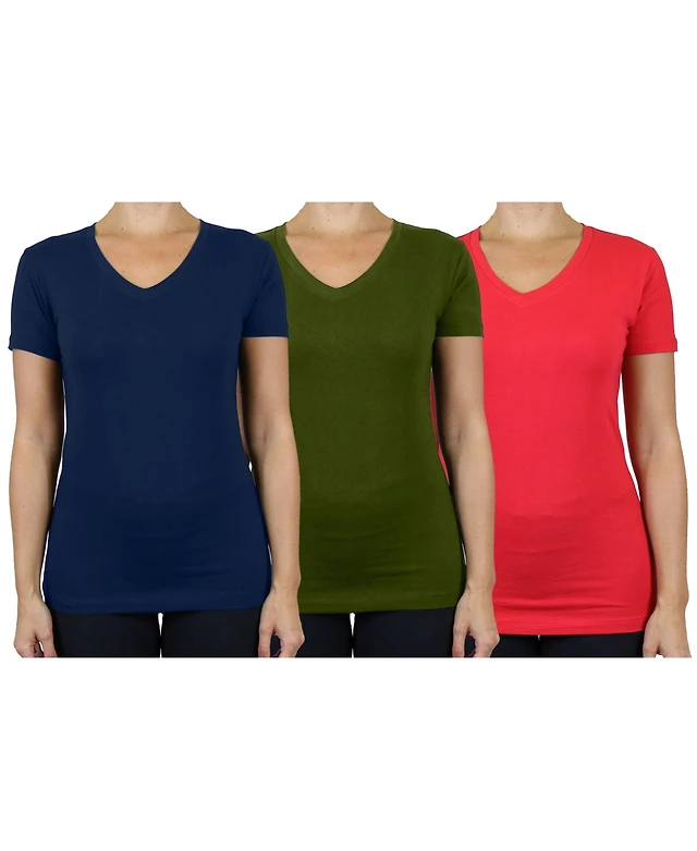 Blu Rock Women's Loose Fit Short Sleeve V-Neck Cotton Stretch Tees-3 Pack