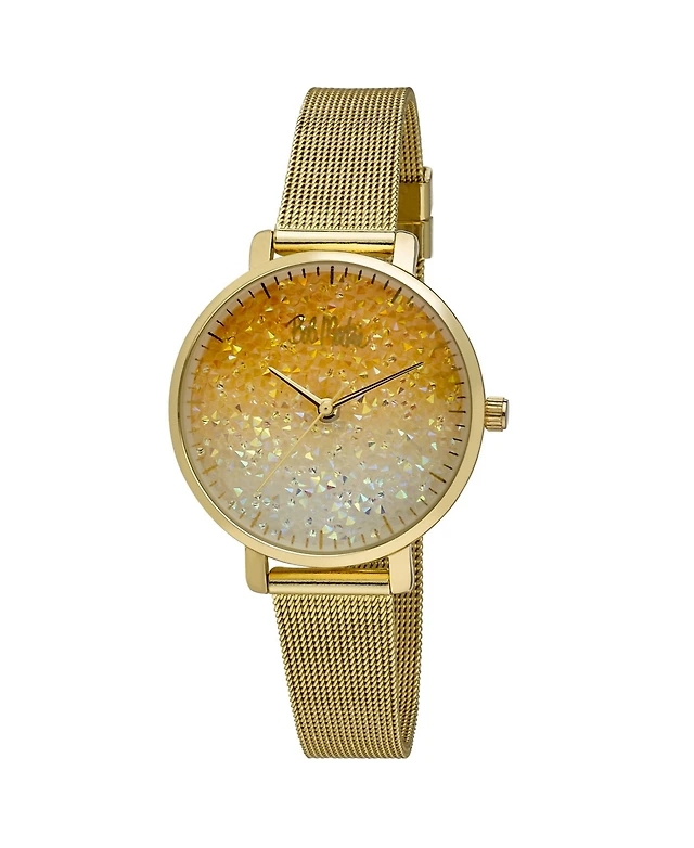 Bob Mackie Women's Gold-Tone Alloy Bracelet Glitter Dial Mesh Watch, 32mm