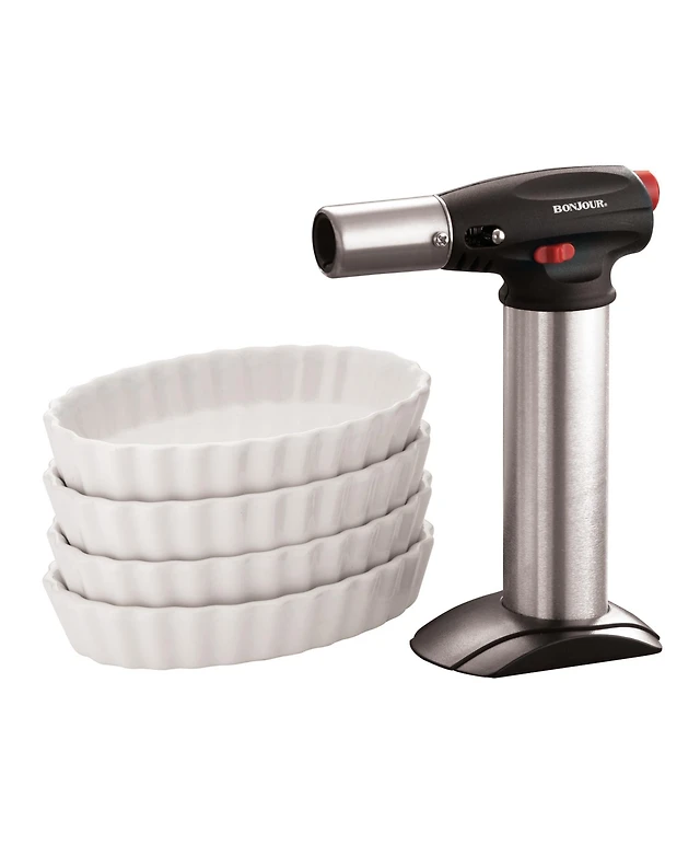 BonJour Chef's Tools 5-Pc. Butane Creme Brulee Torch and Porcelain Ramekin Set