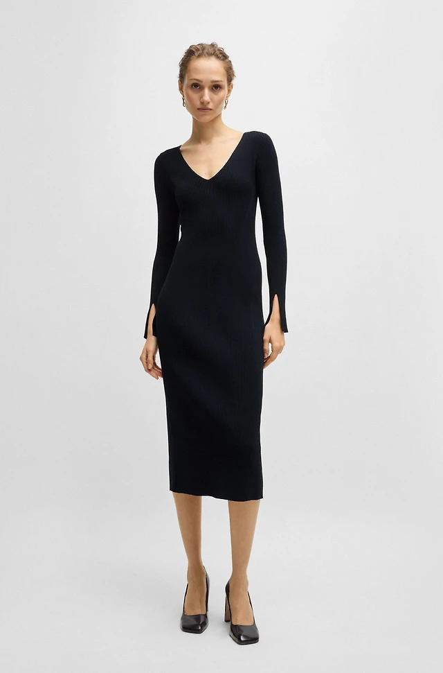Long-sleeved knitted dress with ribbed structure