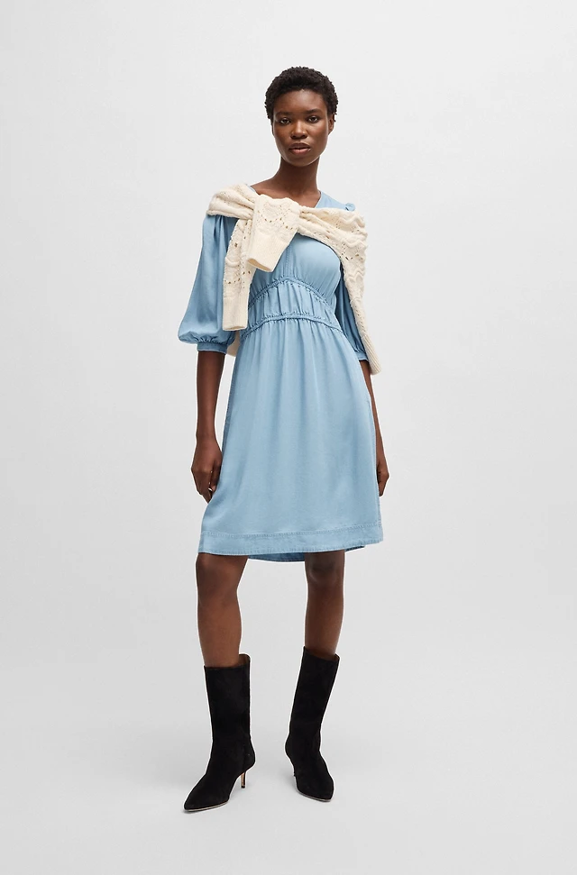 Relaxed-fit blouse stretch silk with keyhole neckline